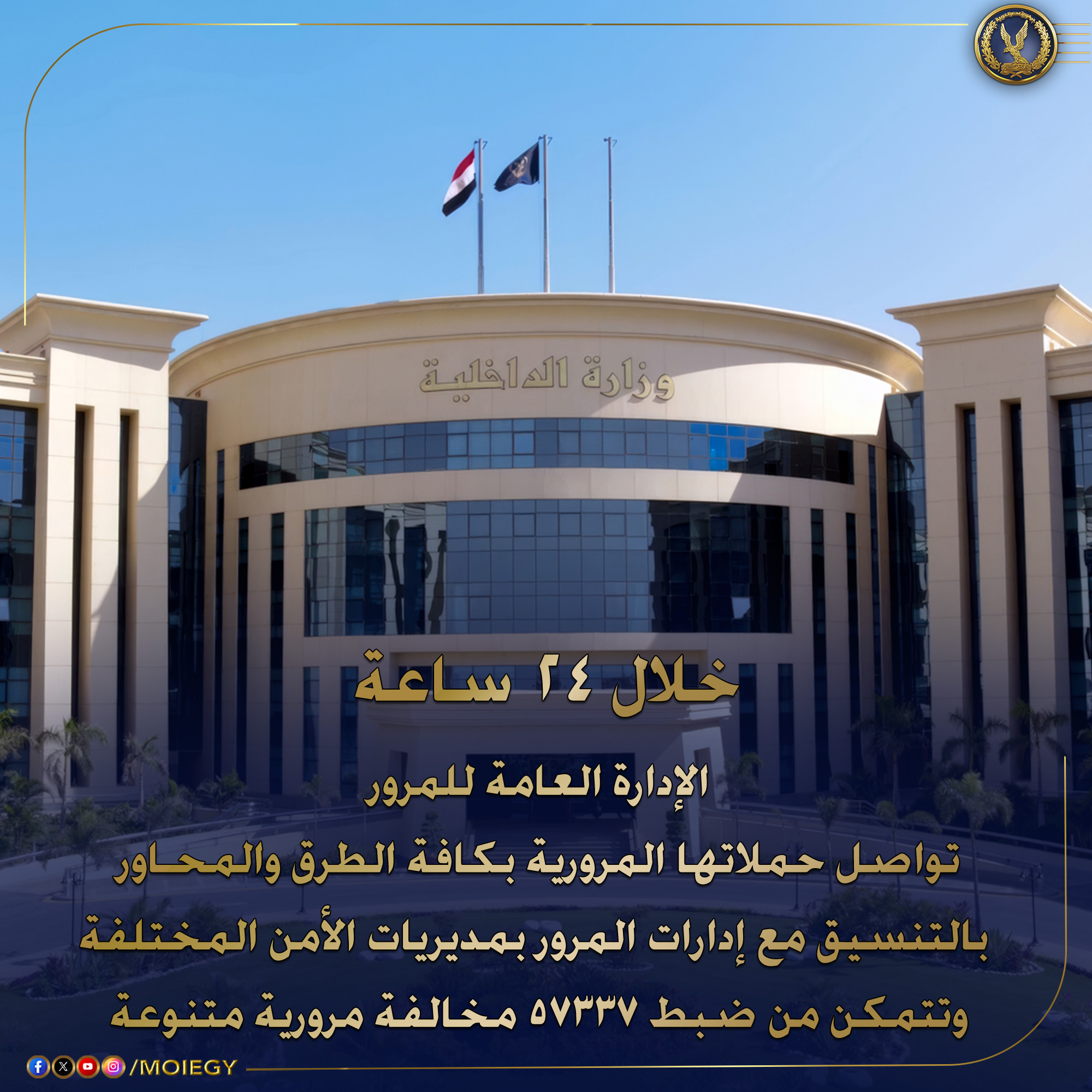 وتواصل وزارة الداخلية، من خلال قطاع المرور، جهودها لتحقيق الانضباط المروري على الطرق، والحد من السلوكيات التي تهدد حياة المواطنين، في إطار استراتيجية الوزارة الشاملة لرفع مستوى السلامة المرورية ومواجهة المخالفات بكل حزم.
